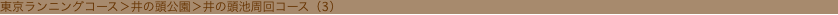 ■井の頭池周回コース3 弁天さまの前を走り過ぎると池の南側になります。池の南縁に沿って進みましょう。 途中七井橋の南詰め付近では広いエリアになります。池を間近で見ることはできませんが、木々の隙間からこぼれ見る水面はきらきらとゆらめき心にすーっとパワーをくれるようです。ちなみに七井橋は吉祥寺駅から伸びて公園の真ん中を南北に横切りその先にある住宅街へ続く七井通りの橋です。正確には池の中でボート乗り場や水生物園のある島で連続する2つの橋になっていますので、この南側の橋は「狛江橋」となります。 池の南岸の最後の部分はゆるやかな傾斜になっています。そして坂を下ったところで左折して水門橋を渡り池の北側に戻ります。水門橋は神田川の起点となる場所で春には桜が見事な花のアーチを見せてくれます。 | ||||||||||||||||||||
