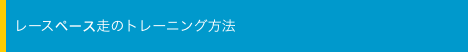 目標タイムを設定し、そこから1kmあたりの平均ペースを割り出します。 そのペースで一定の距離を走ります。 実際に走る距離は、自由に設定してかまいませんが、あまり短いと練習になりません。レースペーストレーニングでは最低でも5kmくらいは走ってみましょう。 レースペース走では、持久力やスピードが養われるだけでなく、本番のレースでのペース感覚を磨くことができます。このトレーニングを積むと、自分が今どれくらいのペースで走っているかがわかるようになります。 マラソンのトレーニングを積んでいくうえで、これは大きなスキルになります。 | |||||||||||||